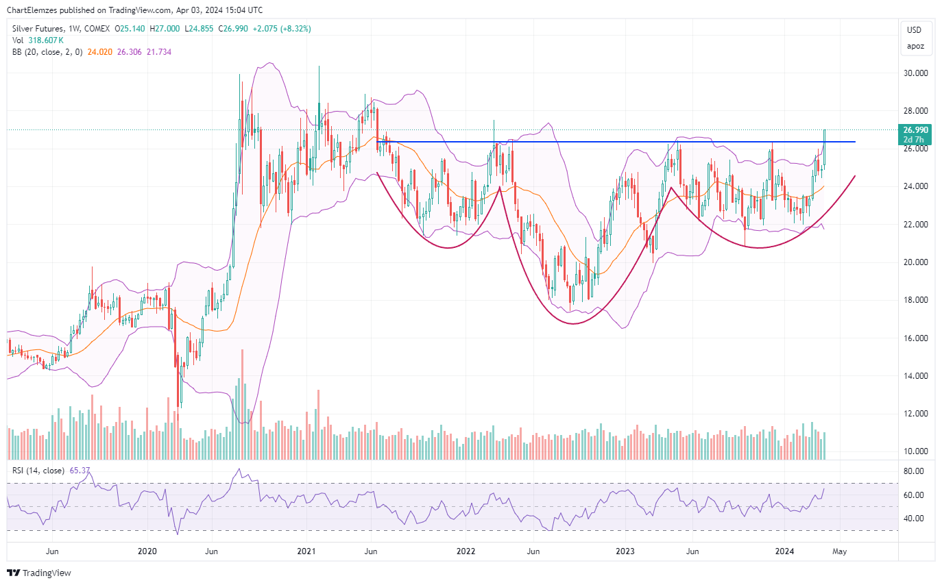 Ezüst (xag/usd)Heti: [2024-04-04 09:22:16] Az aranyhoz képest jócskán lemaradó, de ugyanaz a ford. fej-váll alakzat. Gyönyörű, tökéletes alakzat – lenne, ha nem tudnánk, hogy az arannyal szemben mennyire lemaradó. Ez utóbbi miatt viszont komoly esélye van a kitörés behalásának. ![]() |