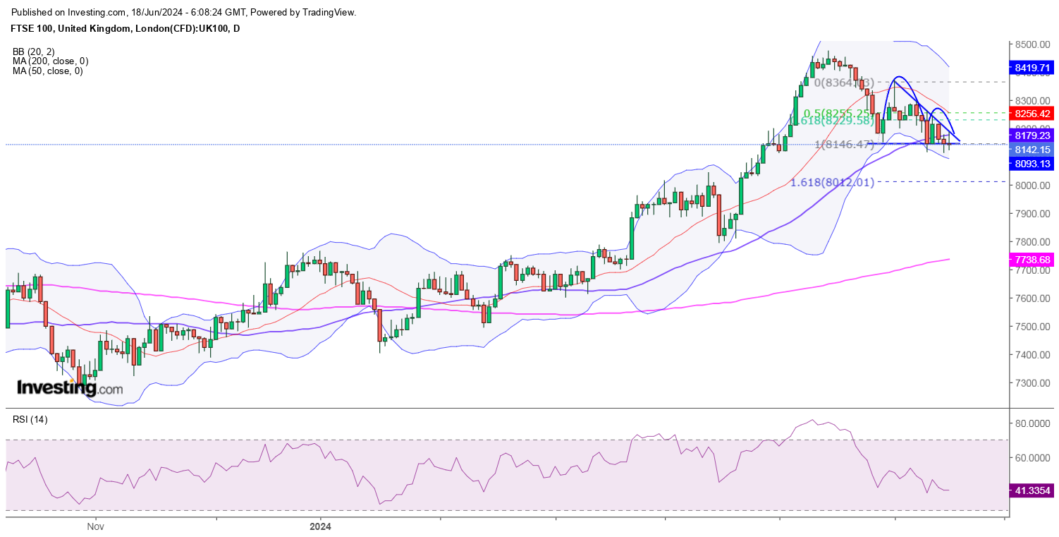 Letörte az 50 napos átlagot. Ma ismét ezt teszteli vissza. Ezzel ezt a mozgóátlagot megerősítette ellenállásként. Csökkenő háromszög, következhet ebből a letörés. 8000 a célár.