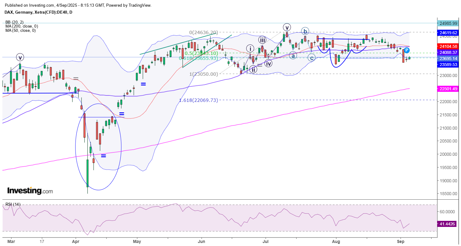 Az 50 napos átlagról élesen lefordult, ezzel elhagyta lefelé ezt a szűk sávot. Tolja lefelé a BB-szalagokat.