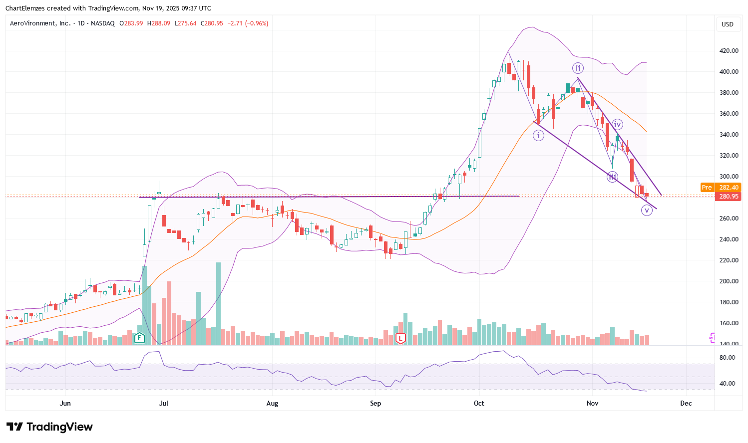 AeroVironment (AVAV)Napi: [2025-11-19 10:42:48] Nagyon hasonló a másik dróngyártóhoz, a RedCat-hez a chart. Esés öt hullámban, a korábbi széles sáv tetejéig. Ez támasz. A lefelé ékelődésből kitörést várhatunk, az A hullám 320 környékére emelheti. Itt várja egy rés a visszatöltést. ![]() |